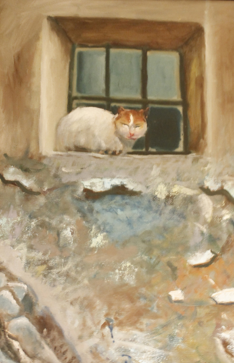 1/7 - Gato sobre la ventana. Uno de mis primero óleos.