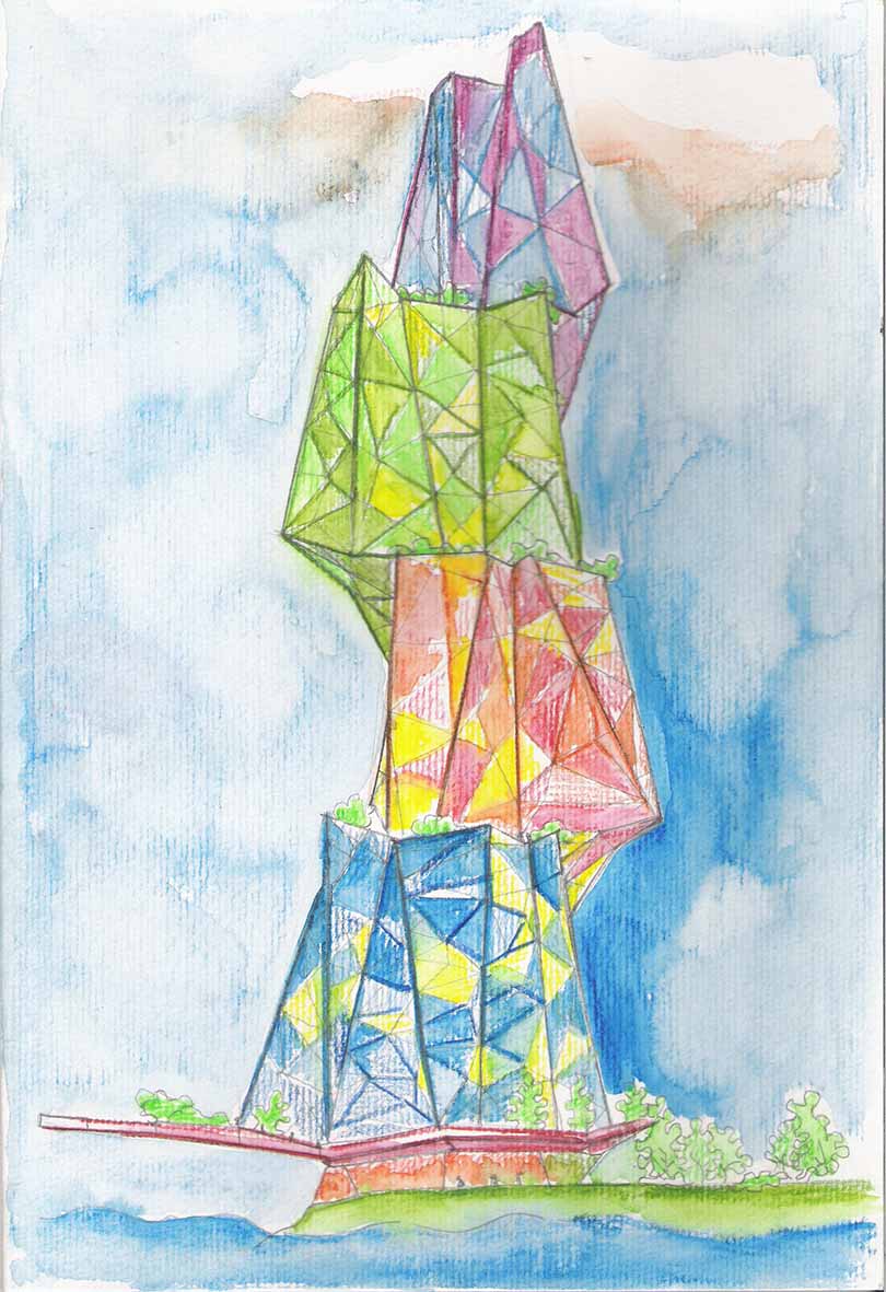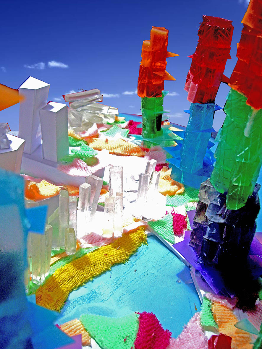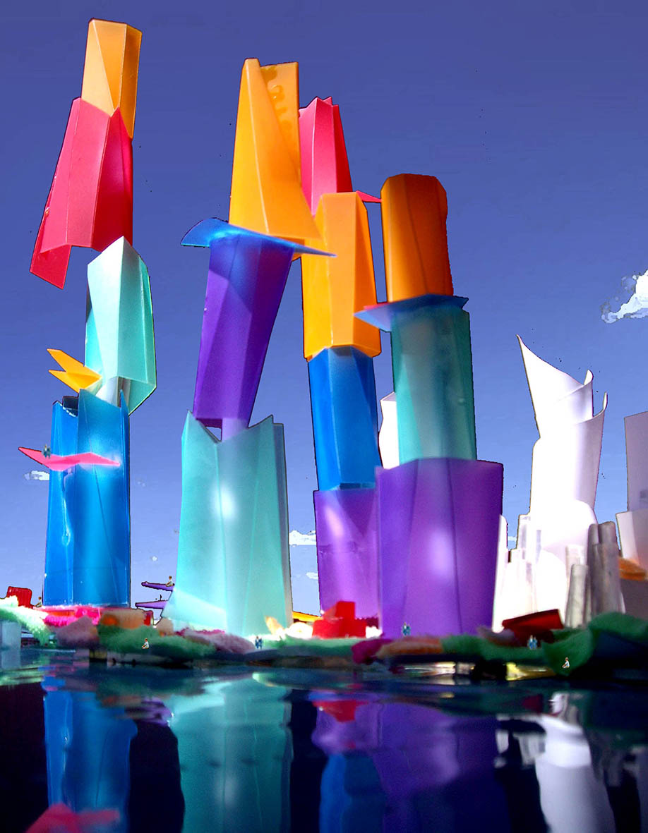 5/7 - Vista general del conjunto en maqueta. Relación escallar con el entorno busca crear un hito.