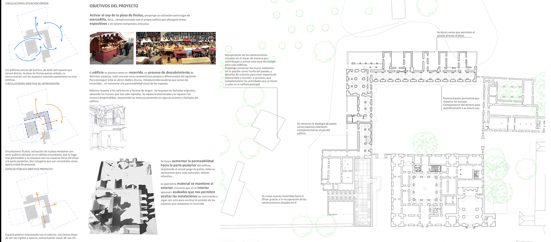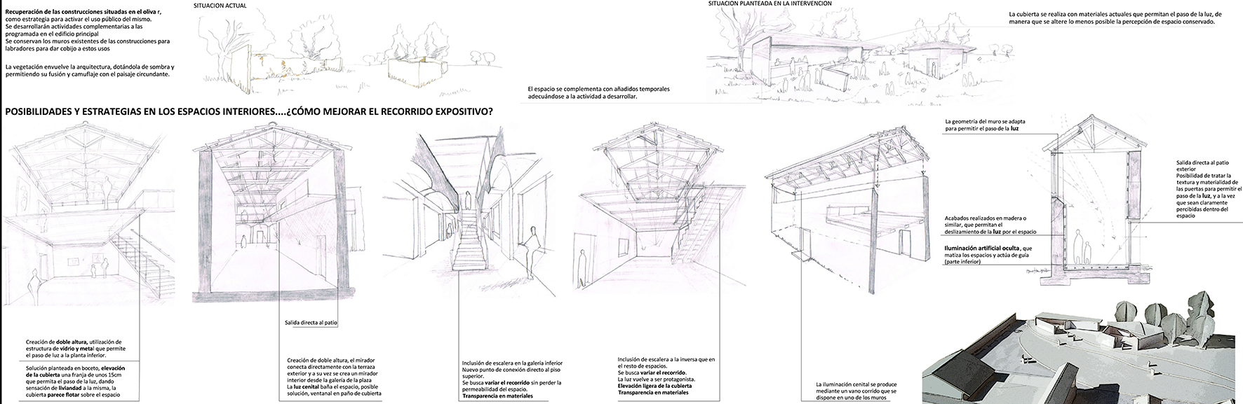8/10 - Axonometría desmontada del conjunto. Se busca fluidez en los espacios. Limpieza de añadidos que desdibujaron lo original.