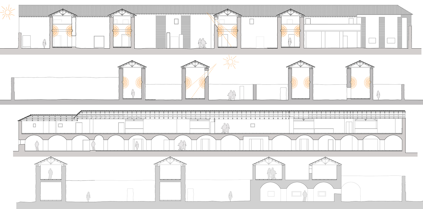 7/10 - Secciones longitudinales del proyecto. Se reflejan las ideas expuestas en otras imágenes anteriores.