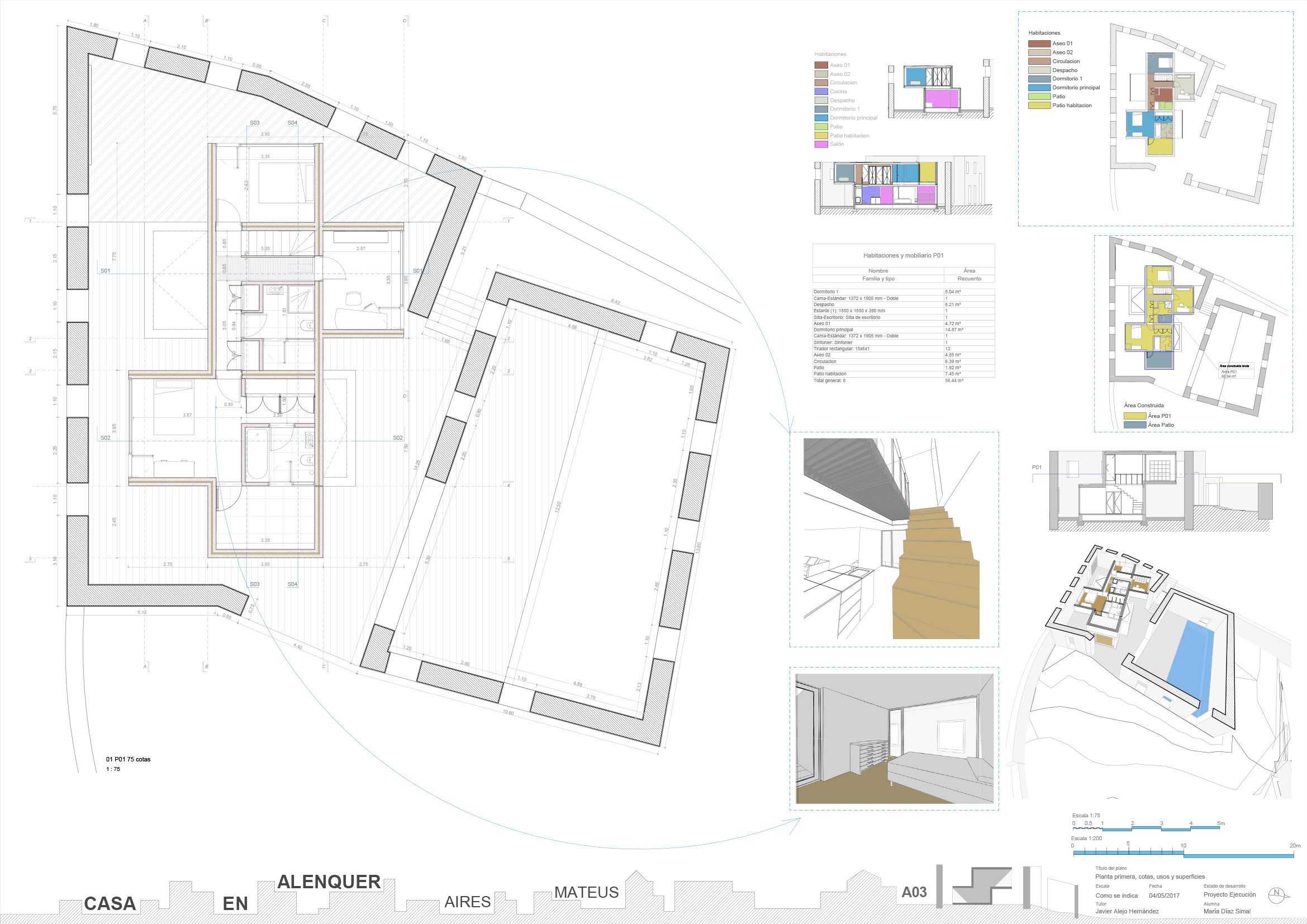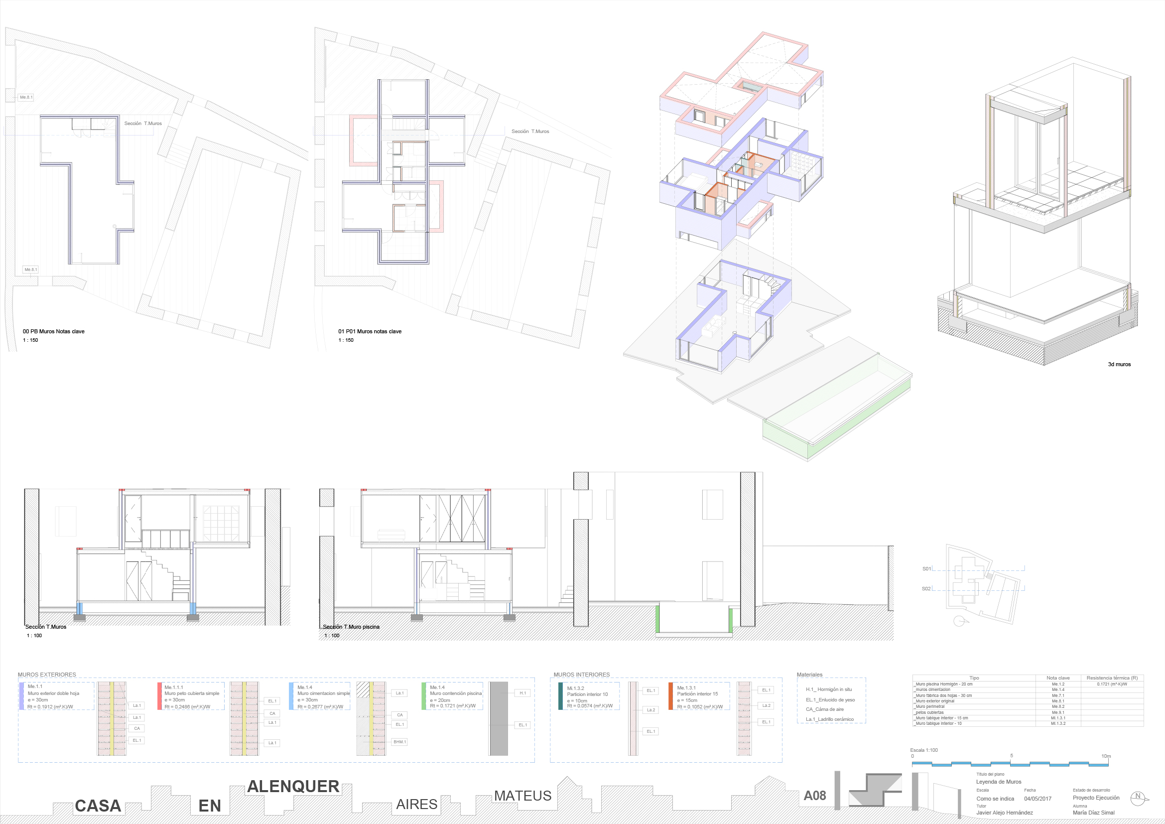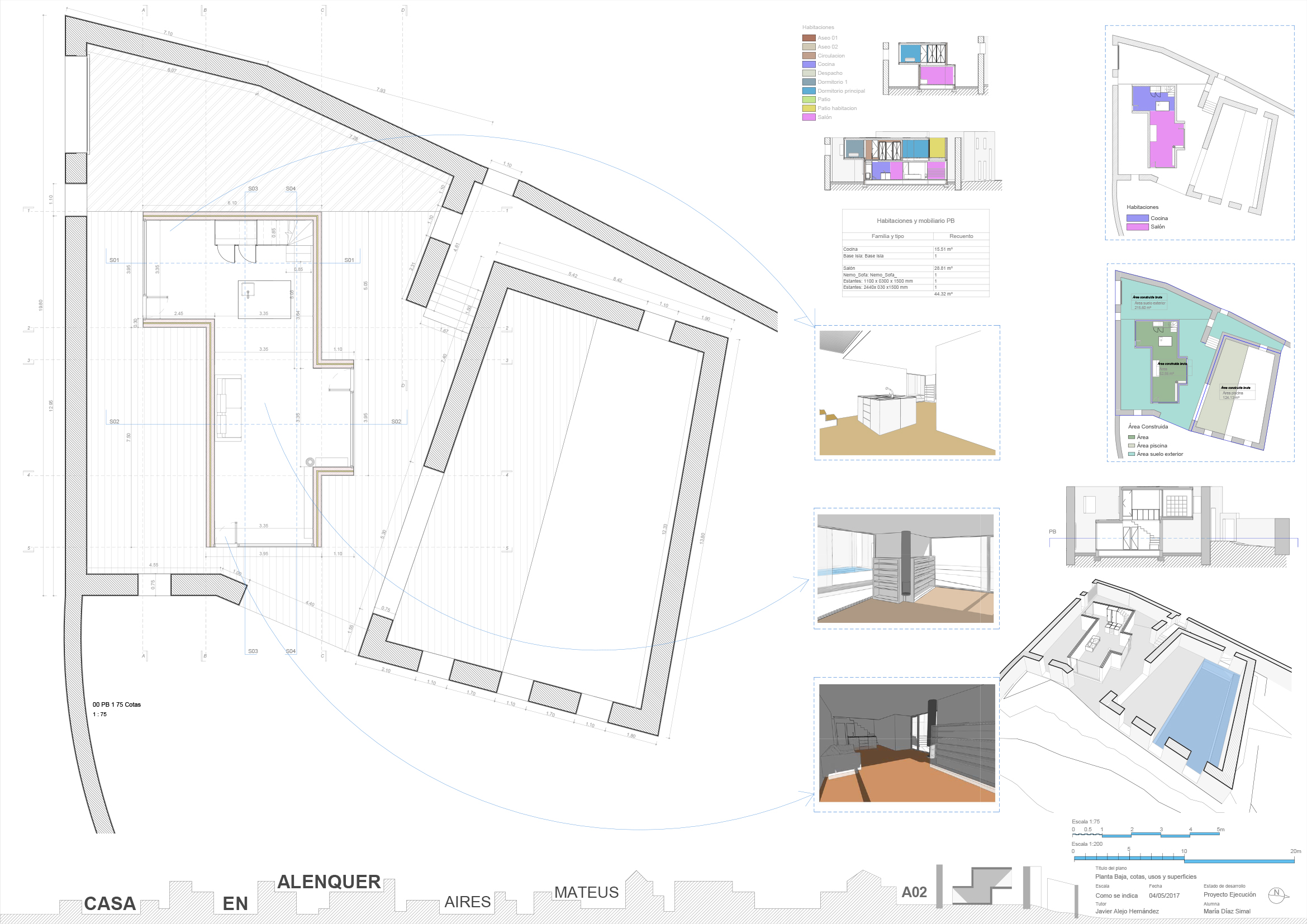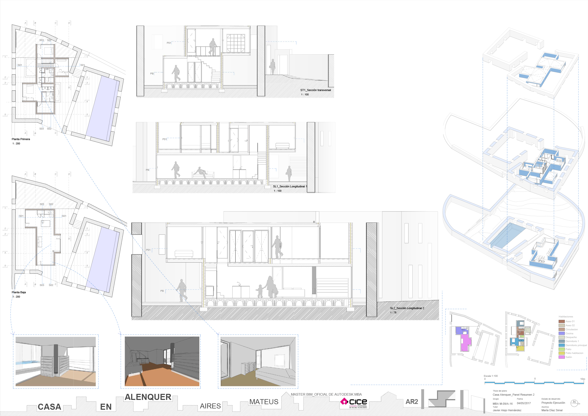 02/15 - Lámina resumen Casa Alenquer (Aires Meteus). Plantas, secciones y vistas interiores.
