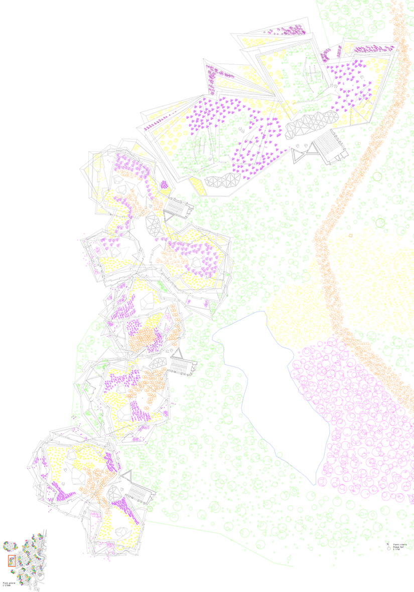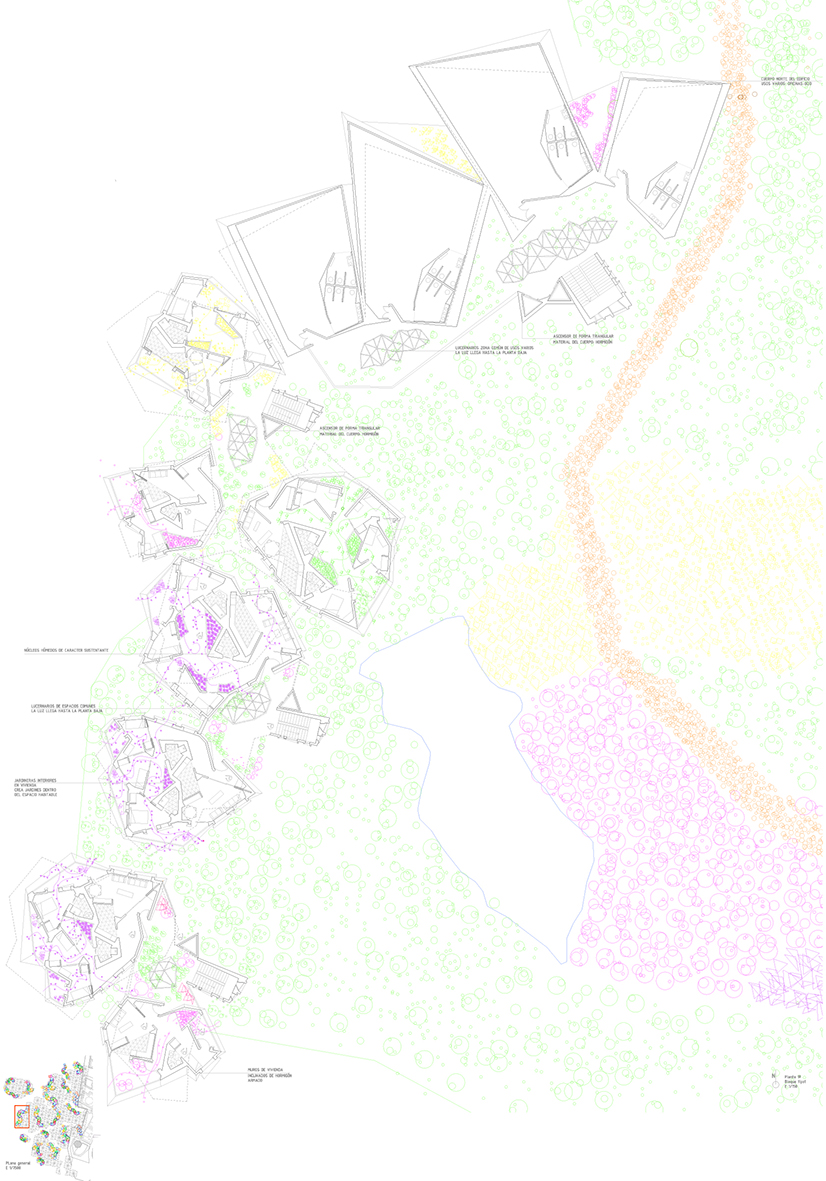 1/10 - Planta de situación de todo el conjunto residencial-parque con los distintos tipos de vagetación situados.