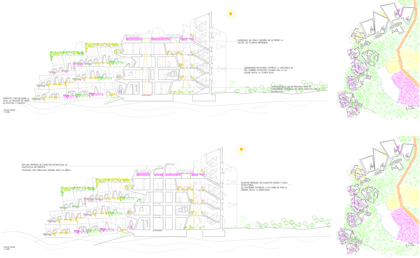 8/10 - Secciones tipo. Los espacios se escalonan. La luz es un valor importante dentro del proyecto.