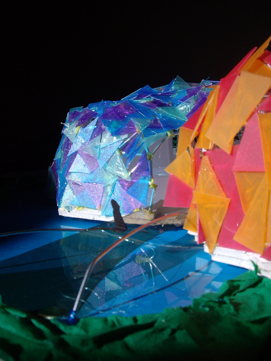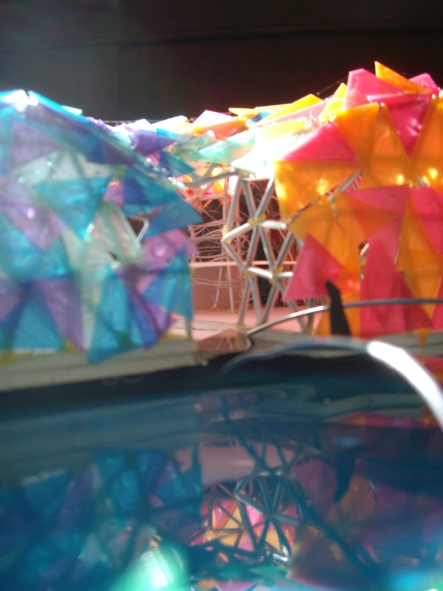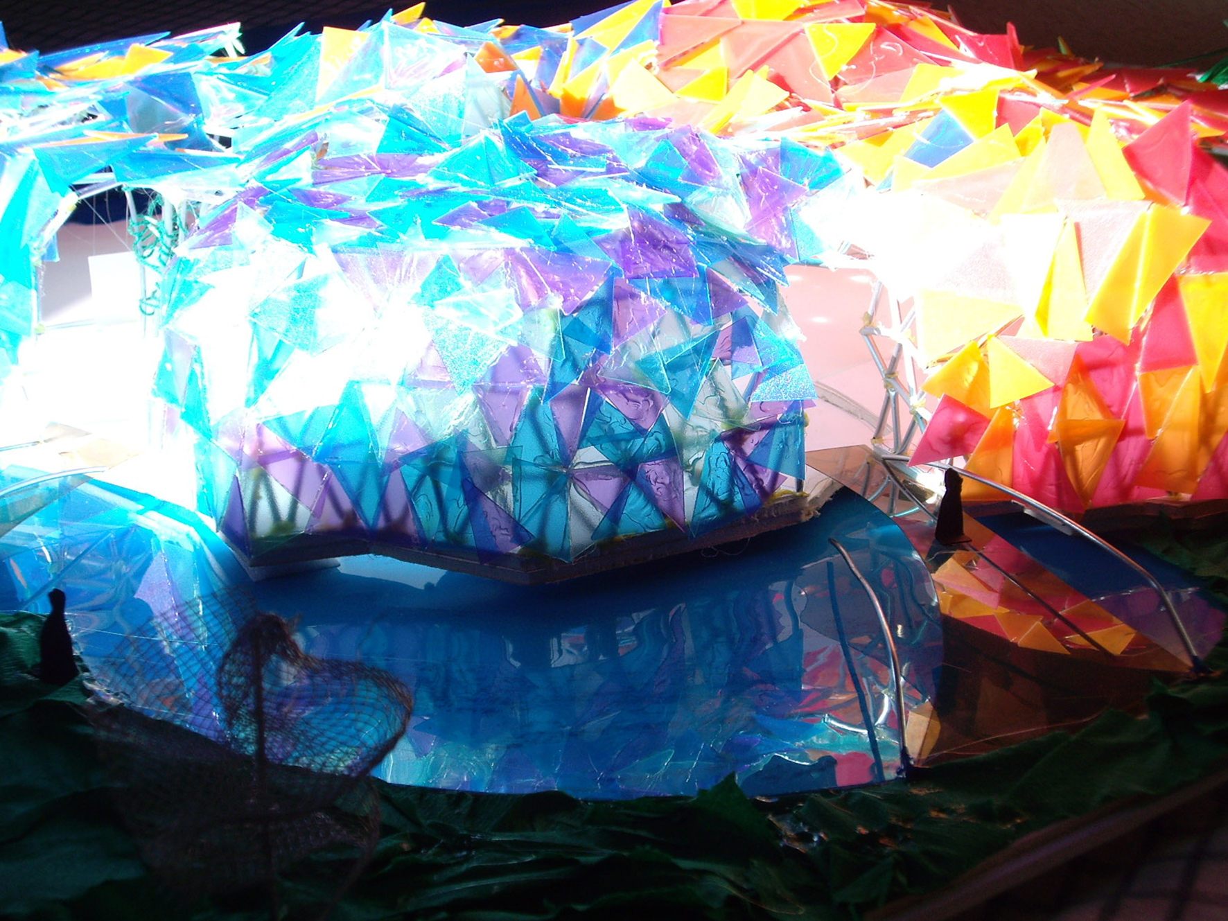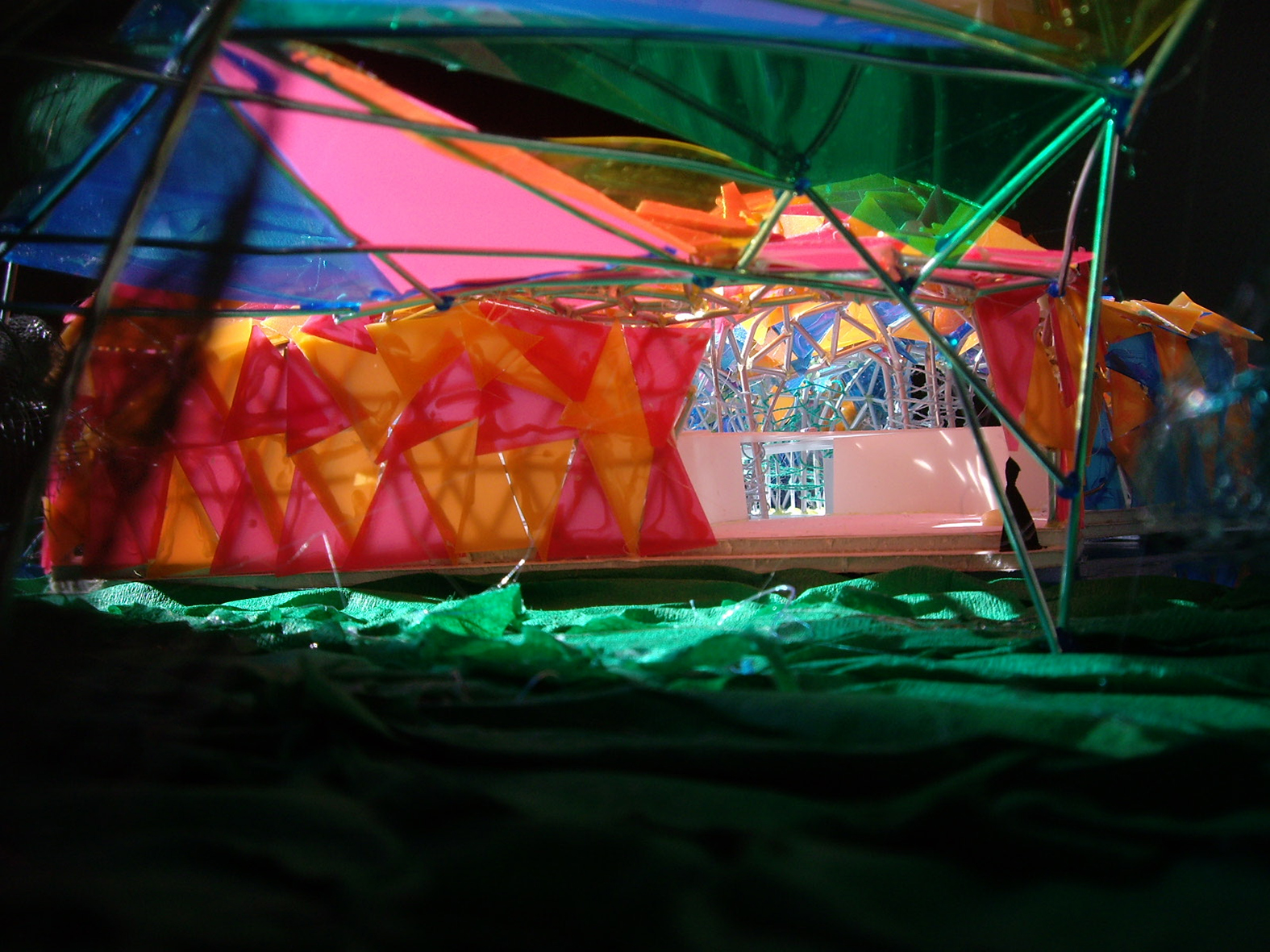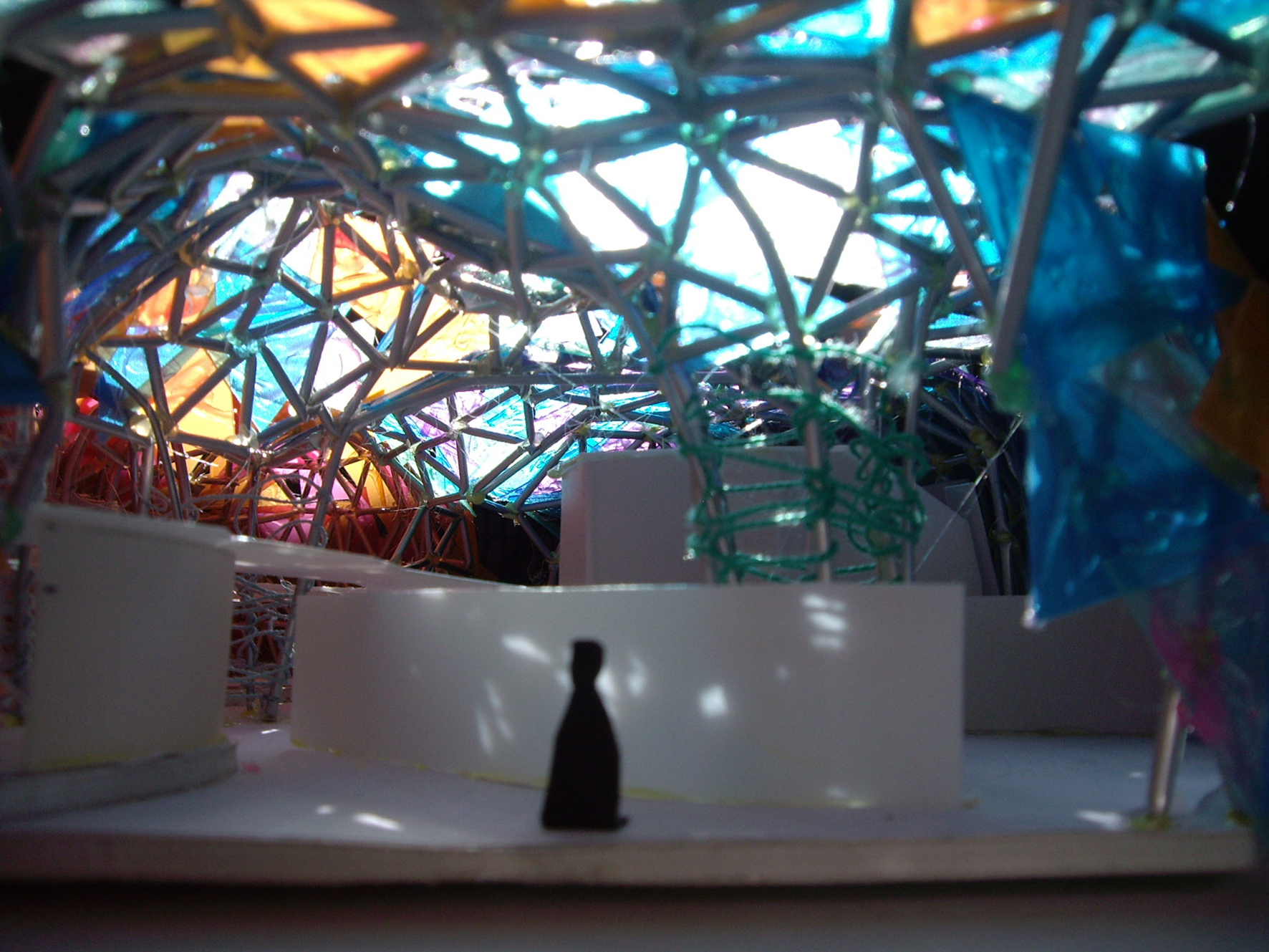 6/7 - Vista detalle interior. Iluminación colorista gracias a las láminas de cubierta.