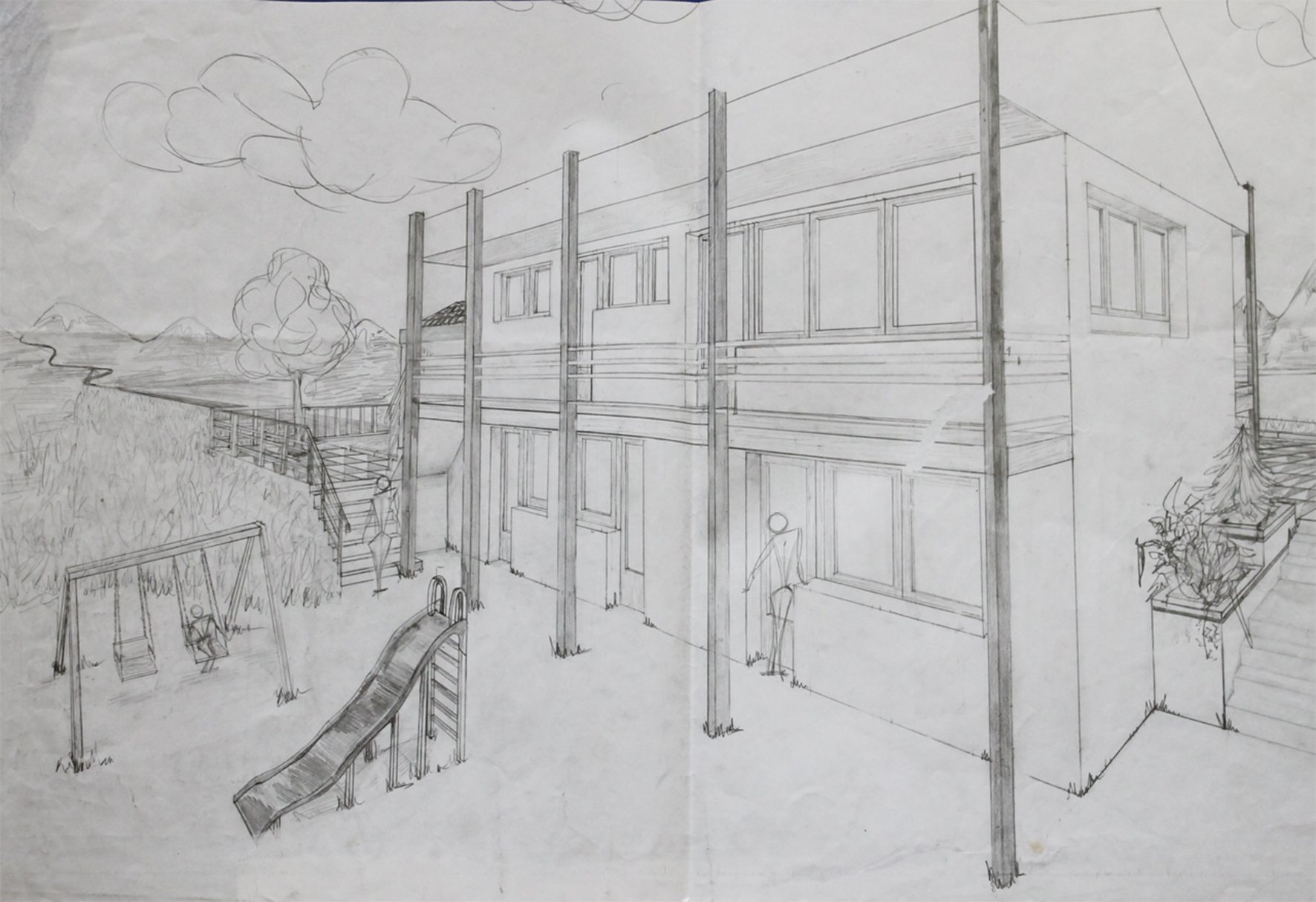 2/4 - Perspectiva de vivienda. Inicio del dibujo y el interés por la arquitectura.