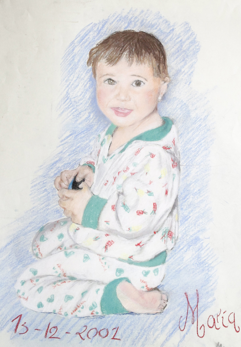 7/9 - Retrato a pastel de mi hermana pequeña. Estudio de la postura.