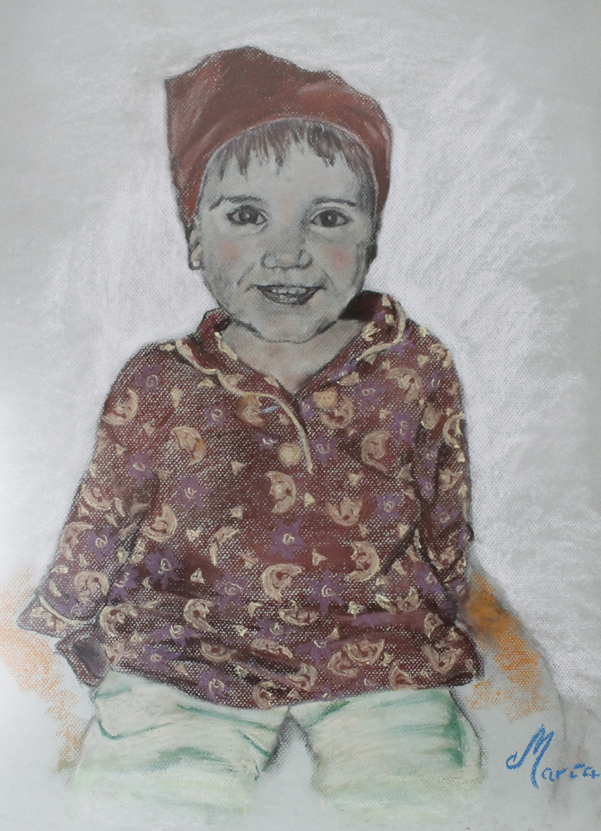 6/9 - Pequeñajo bajo confeti. Uno de los primeros retratos a pastel que realicé.