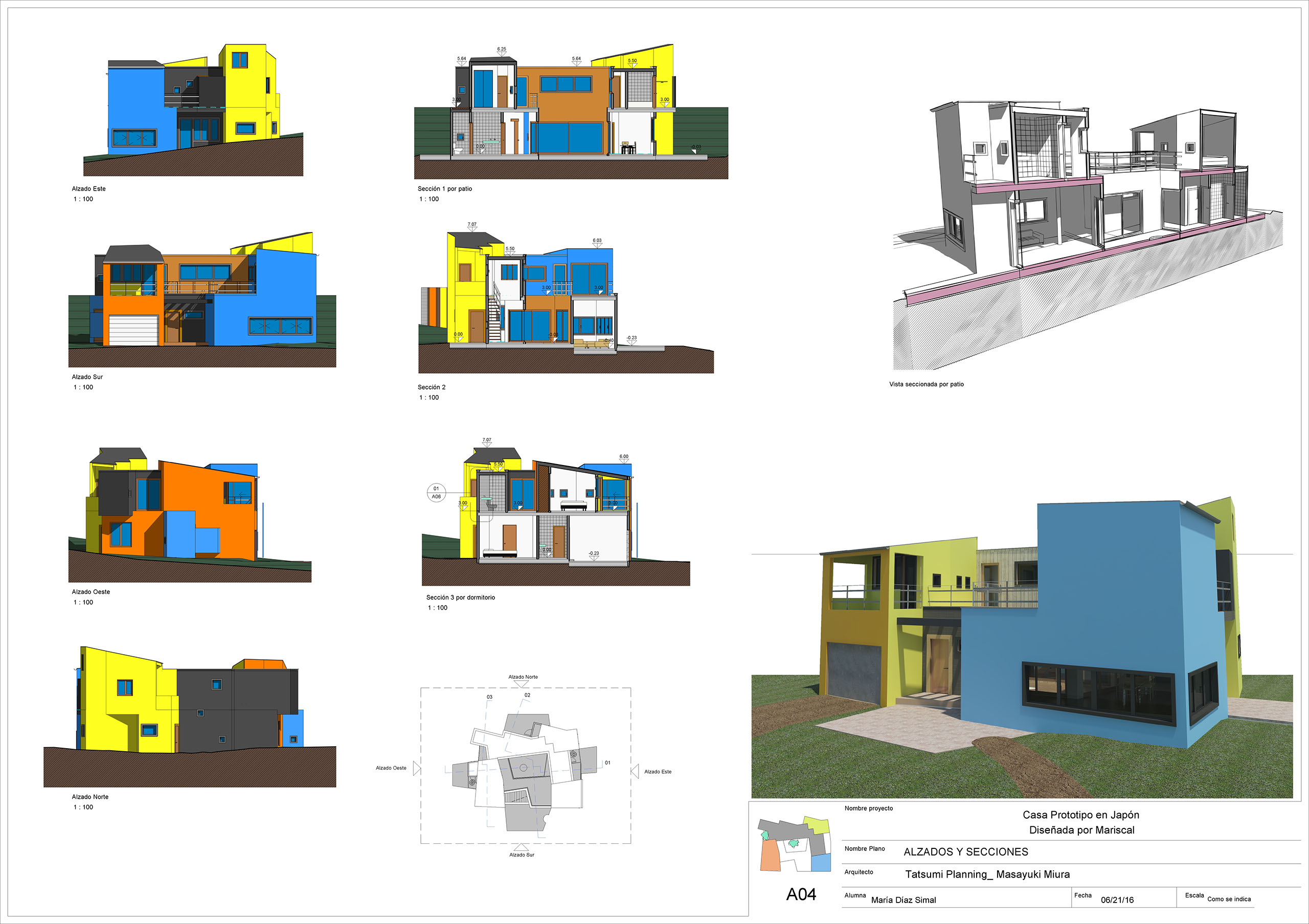 5/9 - Casa Mariscal (Japón). Alzados y secciones.