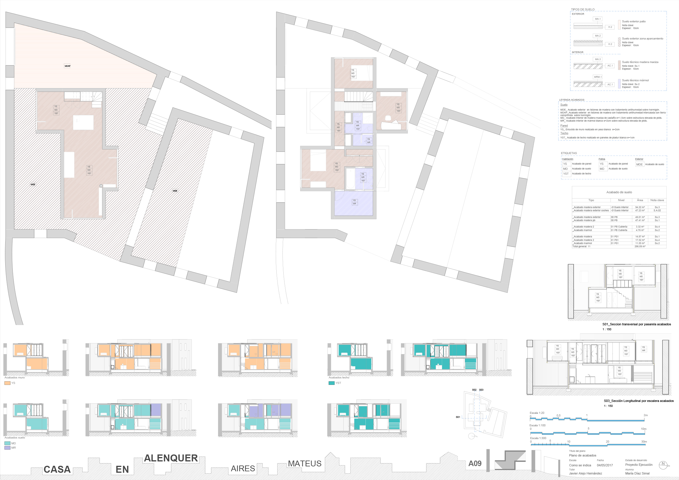 02/15 - Lámina resumen Casa Alenquer (Aires Meteus). Plantas, secciones y vistas interiores.