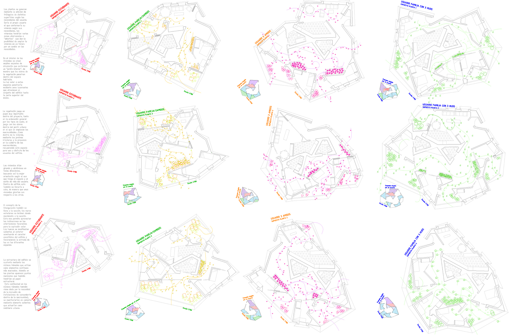 5/10 - Planta tercera tipo. Las viviendas se apilan y giran unas sobre otras buscando la luz.